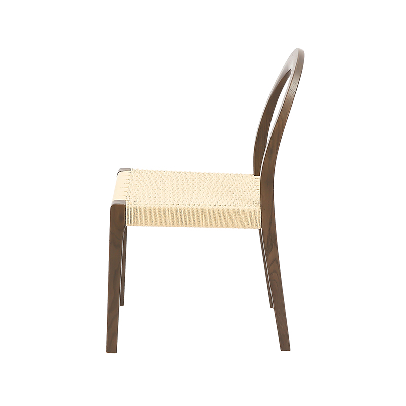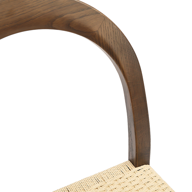 底座采用编织工艺,手工编织的细节体现了匠心精神与耐用性,不仅增强了结构的支撑力,也为整体造型增添了轻盈灵动的气息。椅背和座位的设计符合人体工程学,提供良好的支撑,适合长时间使用。